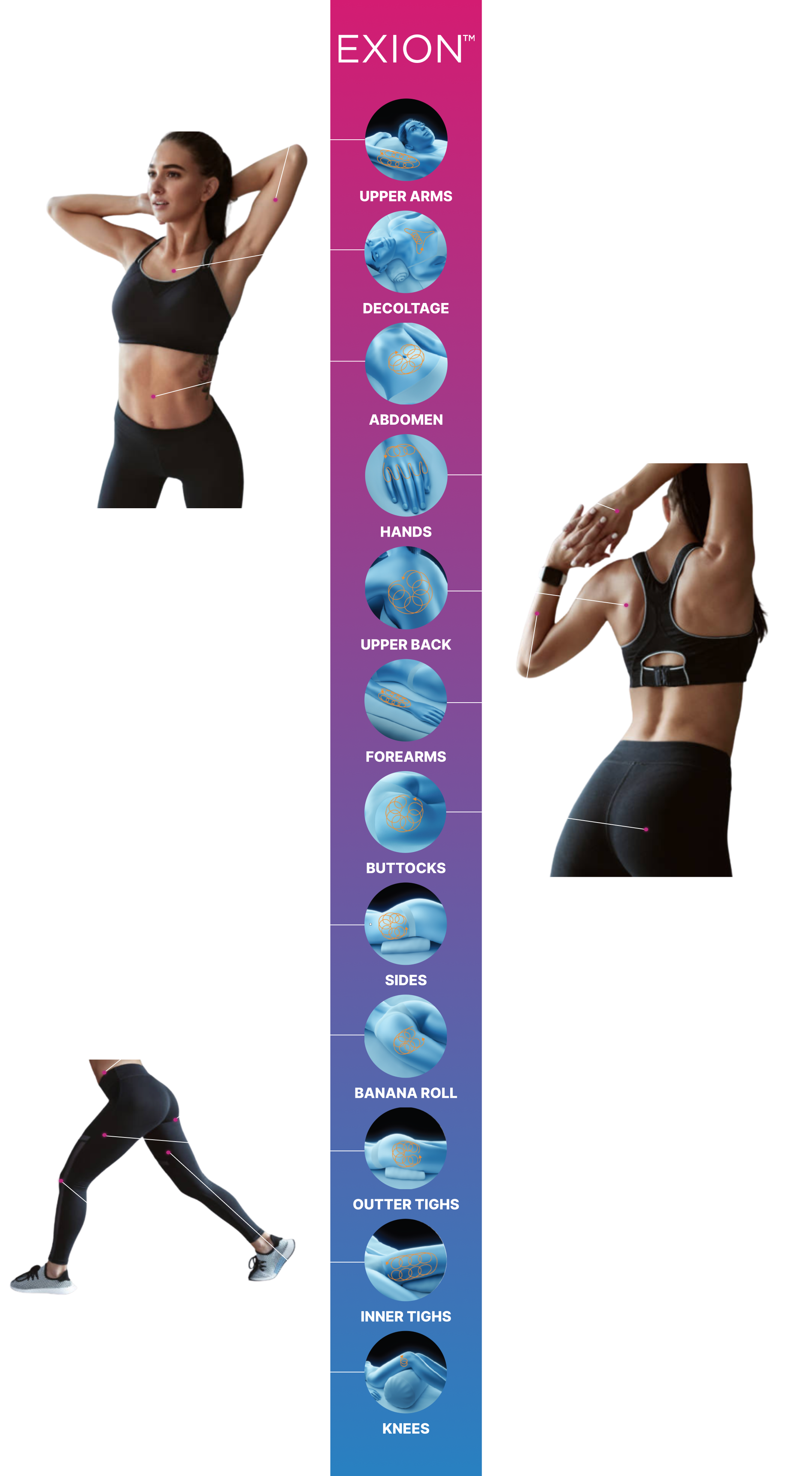 The treatment covers 20 different areas on both the face and body, including around the eyes, forehead, neck, décolletage, as well as arms, abdomen, thighs, and buttocks.